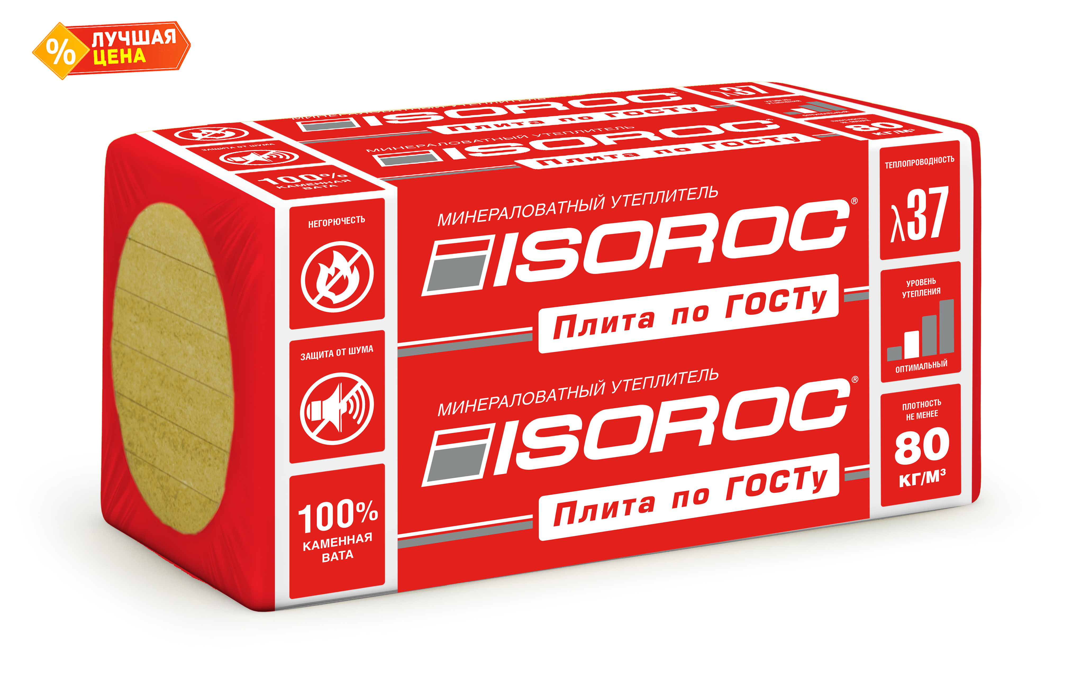 Утеплитель ISOROC ПЛИТА по ГОСТу 1000х600х100 мм